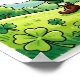 A vibrant St. Patrick's Day design featuring a cheerful leprechaun with a pot of gold, a rainbow arching over a lush green landscape, and shamrocks scattered throughout.