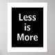Este póster estilo minimalista captura la esencia del diseño moderno con una poderosa declaración: "Less is More". Con letras blancas y limpias sobre un fondo negro profundo, este diseño atemporal es perfecto para quienes valoran la simplicidad y la elegancia en su entorno.