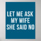 Póster Let Me Ask My Wife She Said No Funny Husband