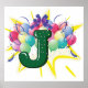Póster Letra de monograma de celebración J con globos