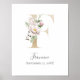 Póster Letra F Rosa Blanco Floral Dorado Guardería
