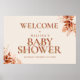 Un elegante cartel de bienvenida con una ducha de bebé de otoño con letras florales rústicas de terracota de bonito. Diseñado por Thisisnotme©