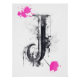 Letra biselada vieja letra tipográfica J en tinta negra y pulverización rosa