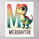 Letra mayúscula M, Poster de color de agua del alfabeto de dinosaurio Este poster de 8.5x11 para la letra "M" presenta un microraptor muy lindo, continuando la serie de alfabetos de dinosaurio con colores y encanto audaces. La letra "M" se desvanece del coral cálido al verde azulado fresco, con una textura escalonada sutil que añade profundidad e interés. El Microraptor, con orgullo a su lado, arroja una sonrisa lúdica, con ojos anchos, un vientre amarillo-naranja y un cuerpo verde azulado cubierto de puntos rojos y verdes vibrantes. Su colorida cabeza y cola le dan un toque extra de personalidad. El nombre "MICRORAPTOR" está claramente impreso en letras marrones en negrita, lo que facilita a los niños vincular la carta con el dino. Este poster aporta energía y diversión a cualquier entorno educativo, perfecto para despertar el amor por las letras y los dinosaurios.