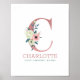 Póster Letra monograma C acuarela rosa Floral Nursera