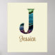 Elegante poster de impresión con agate color pavo real y veta dorada con letra monograma J y espacio para añadir nombre u otro mensaje