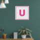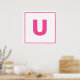 Alfabeto U de letra rosa sobre fondo blanco con borde rosa. Ayuda a tu pequeño a aprender el alfabeto con esta letra U diseño.