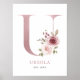 Póster Letra U Monograma Acuarela Rosa Floral Nursera