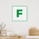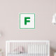 Letra verde alfabeto F sobre fondo blanco con borde verde. Ayuda a tu pequeño a aprender el alfabeto con esta letra F diseño.
