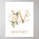Elegante poster de guardería monograma W con rosa de crema blanca acuarela y follaje verde.