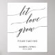Esta elegante señal de caligrafía deja que el amor crezca es perfecta para una boda simple. El diseño neutral presenta un póster minimalista decorado con tipografía romántica y caprichosa. Personalice la señal con el nombre de la novia y el novio y la fecha de la boda.
