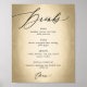 Script de Caligrafía Negra Elegante en Menú de Bebidas de Lámina de Oro Falso y Letrero de Bar de Recepción de Boda Cheers.