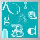 Póster Letras decorativas sobre fondo azul