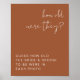 Esta plantilla editable de juego para baby shower/despedida de soltera imprimible presenta una fuente manuscrita con estilo y un diseño minimalista moderno con una combinación de colores boho terracota y blanco. Utilice esta plantilla para editar el color de la fuente y el color de fondo para que se ajusten a las necesidades de su evento.