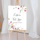 Este letrero clásico de flores silvestres coloridas con texto personalizado es perfecto para una boda rústica o una ducha de novia. El diseño presenta flores silvestres amarillas, púrpuras y blancas con follaje en un fondo de acuarela rosa y verde.