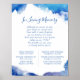 Letrero conmemorativo de boda impreso personalizado con un borde abstracto de acuarela azul para coordinar con nuestra colección Marea de Zafiro. Personalízalo con tu texto personalizado en memoria de seres queridos que ya no están contigo para celebrar. Utiliza las herramientas de diseño para editar las fuentes y colores o sube tus propias fotos para crear un letrero de boda único en su tipo.