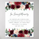 Diseñado para coincidir con nuestra colección de bodas Radiant Bloom, este elegante letrero botánico es perfecto para colocar en una mesa conmemorativa o exhibición en honor a los seres queridos que han fallecido. Personalice el encabezado y el texto del cuerpo (mostrado con "En amoroso recuerdo" y un breve poema) enmarcado por flores y follaje de tono de joya acuarela.