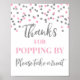 Letrero de agradecimiento por pasar en barra de palomitas para baby shower, despedida de soltera, cumpleaños o boda en patrón de confeti rosa y plata. Tenga en cuenta que el efecto de brillo es solo un efecto fotográfico.