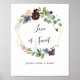 Este letrero de amor dulce geométrico dorado borgoña es perfecto para una boda moderna o ducha de novia. El diseño boho elegante cuenta con flores de color azul marino acuarela, rosa desmayado y tono vino con detalles a lápiz artísticos.