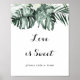 Este letrero de amor floral blanco de vegetación tropical es dulce es perfecto para una boda rústica o una ducha de novia. El diseño presenta ramos de hojas de palma verdes con hermosas flores blancas.