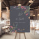 Este letrero de amor floral silvestre azul clásico es dulce es perfecto para una boda moderna o ducha de novia. El diseño presenta flores silvestres amarillas, púrpuras y blancas con follaje en un fondo de acuarela rosa y verde.