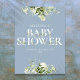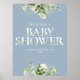 Póster Letrero de Baby Shower Floral Dusty Blue Greenery