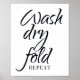 Póster Letrero de baño de lavar secar doblar