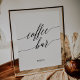 Esta elegante señal de barra de café con caligrafía negra es perfecta para una boda sencilla. El diseño neutral presenta un póster minimalista decorado con tipografía romántica y caprichosa.