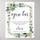 Póster Letrero de barra abierta con follaje verde succule