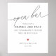 Póster Letrero de barra abierta de boda con letra elegant