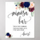 Póster Letrero de barra de mimosa boda de novia rosa mari