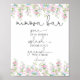 Póster Letrero de barra de mimosa de flores rosadas y veg