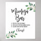 El letrero de BARRA DE MIMOSA presenta un hermoso diseño de caligrafía de vegetación para su boda, ducha o fiesta.