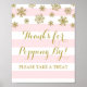 Gracias por pasar por el letrero de la barra de palomitas para baby shower, despedida de soltera o boda en patrón de rayas rosadas y blancas con copos de nieve dorados para celebraciones de invierno.