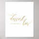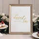 Letrero de barra de postres de boda diseñado a medida con diseño de caligrafía a mano en oro moderno.