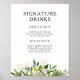 Este letrero de bebidas con firma de elegante verdor de olivo es perfecto para tu boda boho moderna de verano. Está diseñado con hojas de color verde esmeralda acuarela y salvia, toques de dorado botánico, flores de olivo rosadas y tipografía vintage negra simple. Todos estos elementos se combinan para un hermoso ambiente bohemio.