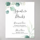 Este letrero de bebidas destacadas de eucalipto verde de verano es perfecto para una boda moderna. El diseño presenta hermosas hojas de eucalipto verde pintadas a mano con acuarela, inspirando encanto natural.