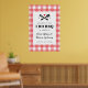 Bienvenidos a los invitados y a la pareja comprometida con un letrero de bienvenida de BBQ con un toque alegre del clásico patrón de manta de picnic a cuadros rojos y herramientas de parrilla con un corazón. Personalice el texto para adaptarlo a las necesidades de su fiesta con casillas de texto flexibles o cambie aún más el diseño utilizando el enlace personalizar más.