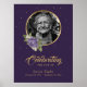 Elegante letrero de bienvenida con foto de funeral floral morado y dorado personalizado con un marco de foto dorado adornado con rosas moradas.