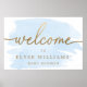 Póster Letrero de bienvenida de acuarela azul dorado