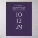 Un elegante letrero de bienvenida que incluye su fecha especial y nombres, con tipografía moderna sobre fondo púrpura. Diseñado por Thisisnotme©
