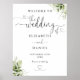 Póster Letrero de bienvenida de boda con guion de corazón