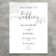 Este elegante letrero de bienvenida de boda con guión de corazón en blanco y negro se puede personalizar con su información en tipografía chic. Diseñado por Thisisnotme©