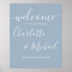 Con nombres de estilo de firma, este elegante letrero de bienvenida azul polvoriento se puede personalizar con su información en letra chic. Diseñado por Thisisnotme©
