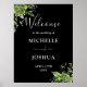 Póster Letrero de bienvenida de boda con vegetación en bl