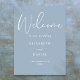 Este letrero de bienvenida de boda de azul polvoriento elegante se puede personalizar con su información en tipografía chic. Diseñado por Thisisnotme©