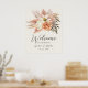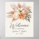 Saluda a tus invitados con este elegante letrero de bienvenida de boda otoñal, que presenta suaves flores de acuarela terracota, marfil y rubor con hierba pampas rústica y vegetación botánica. Una combinación perfecta para bodas al aire libre, boho o con tema otoñal. Personaliza con tus nombres y fecha.
