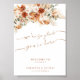 Bienvenidos a sus invitados con elegancia y estilo utilizando nuestra Señal de Bienvenida de Boda Minimalista de Marfil Moderno, adornada con flores de terracota. Con el mensaje sincero "Nos alegra que estén aquí", esta señal combina la tipografía minimalista moderna con el encanto rústico boho. Perfecta para agregar un toque de sofisticación a la decoración de su boda, esta pieza versátil se puede utilizar como señal de mesa, cartel, impresión o pancarta. Ideal para cualquier tema de boda, desde rústico hasta elegante, esta señal es imprescindible para crear una atmósfera cálida y acogedora en su día especial.