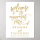 Póster Letrero de bienvenida de compromiso dorado y con l