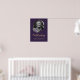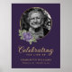 Elegante letrero de bienvenida de foto de funeral floral de oro y púrpura con una foto adornada con rosas púrpuras y aliento de bebé.